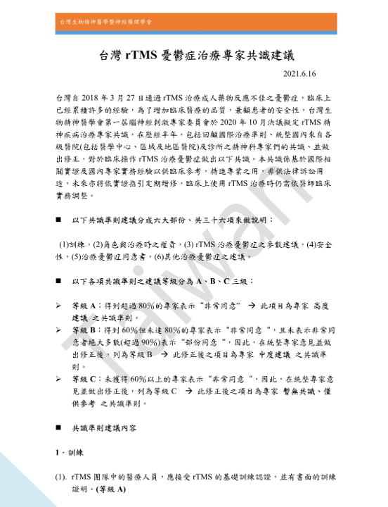 台灣rTMS專家治療共識_臺灣生物精神醫學神經藥理學會